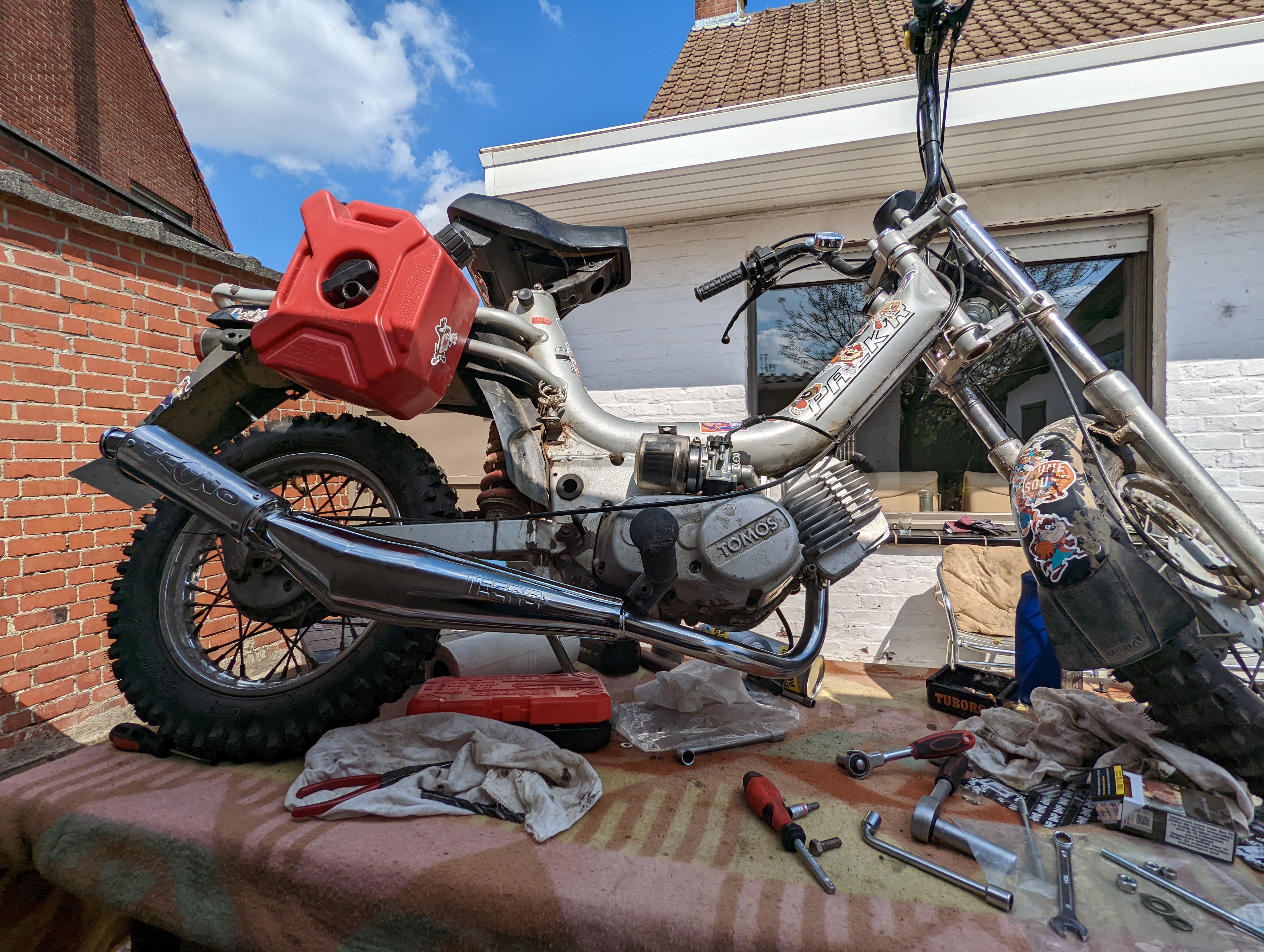 Mijn Tomos pack'r start elektrisch, heeft stationair & rijdt ok, haalt een top van 55km/u maar ontbreekt trekkracht. Er is echt bijna geen koppel en zo goed als geen verschil tussen 50cc of 65cc dit deed die met: