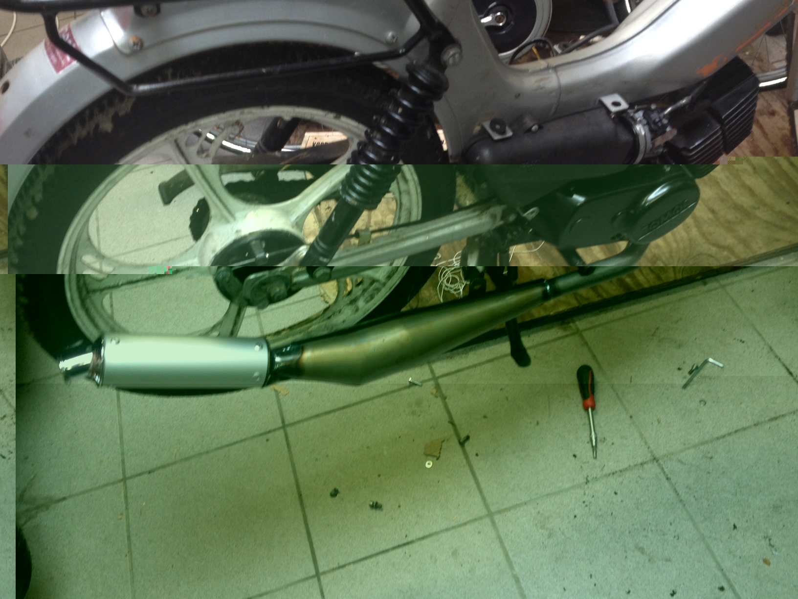 Bij tomos altijd eerst de uitlaat bij de uitlaatpoort vaszetten en vervolgens de uitlaatsteun op de goede plek meppen.