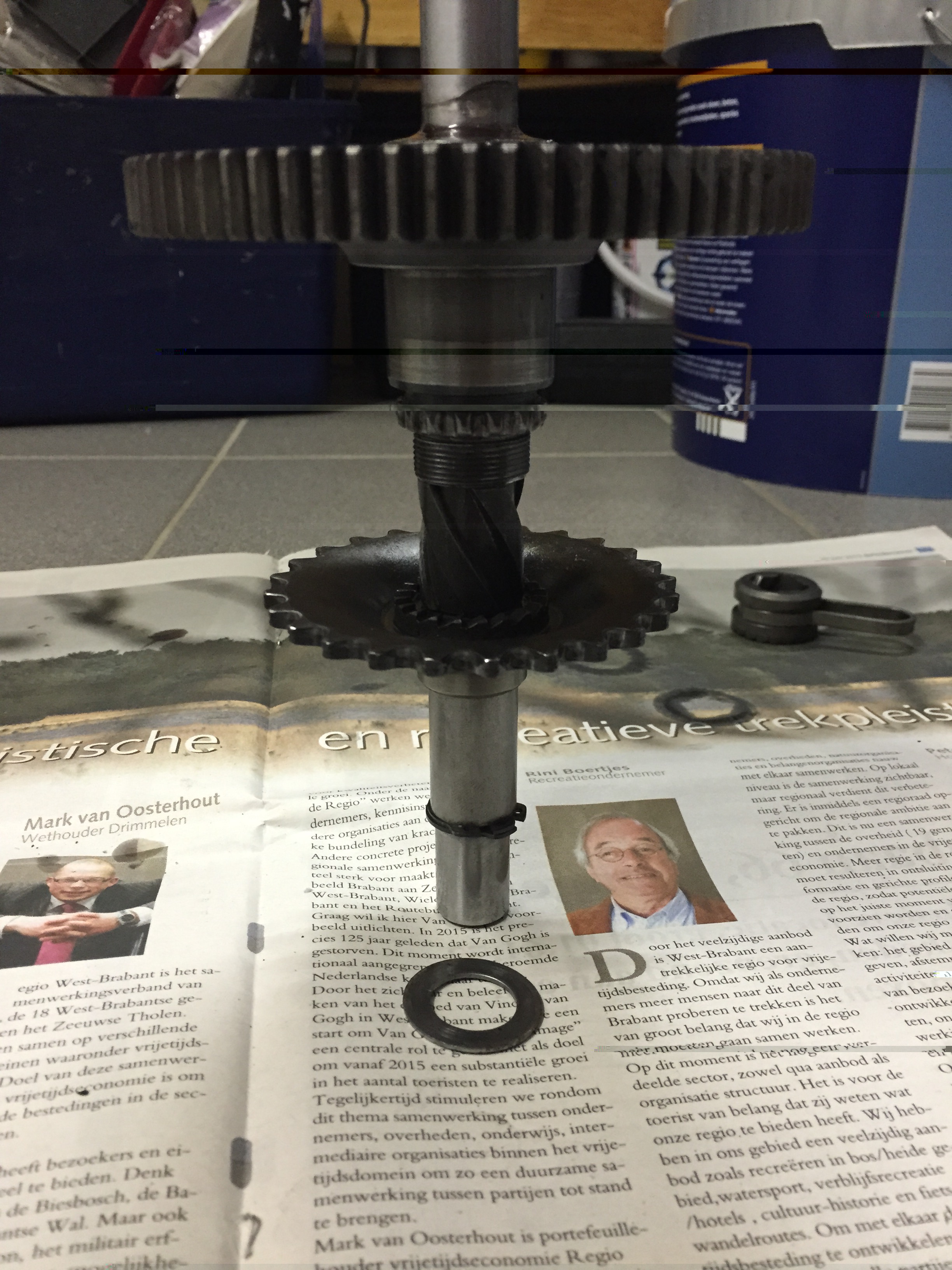 Ik heb het probleem dat de kickstart as speling op zit, hij schuift er in en eruit. (zie filmpje: https://drive.google.com/file/d/0B_nnXP ... sp=sharing) Ook lekt hij hierlangs, op het filmpje is de kering en het ringetje eraf, deze heb ik al nieuw bestelt. Ik heb gelezen dat door een na maak tandwiel er vaak een lekkage kan ontstaan omdat deze te smal is. Dit kan ik met een O-ring oplossen. Ik kwam er gelijk achter dat er best wel veel speling op mijn as zit. Dit verklaart volgens mij ook waarom mijn kickstart bedaal soms te ver terug veerde, de spie gaat langs het stoot rubbertje. Kan iemand mij een goede en goedkope oplossing geven?