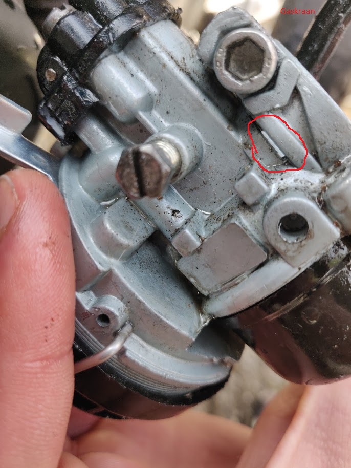Hij lijkt al een tijdje valse lucht te pakken, en ik snap er nog niet heel veel van. Als ik deo spuit op een specifiek deel van de carbarateur (foto's volgen) valt die vrijwel direct uit. Het lijkt er op dat de carbarateur gewoon gespleten is, maar ik snap het eerlijk gezegd niet helemaal meer.