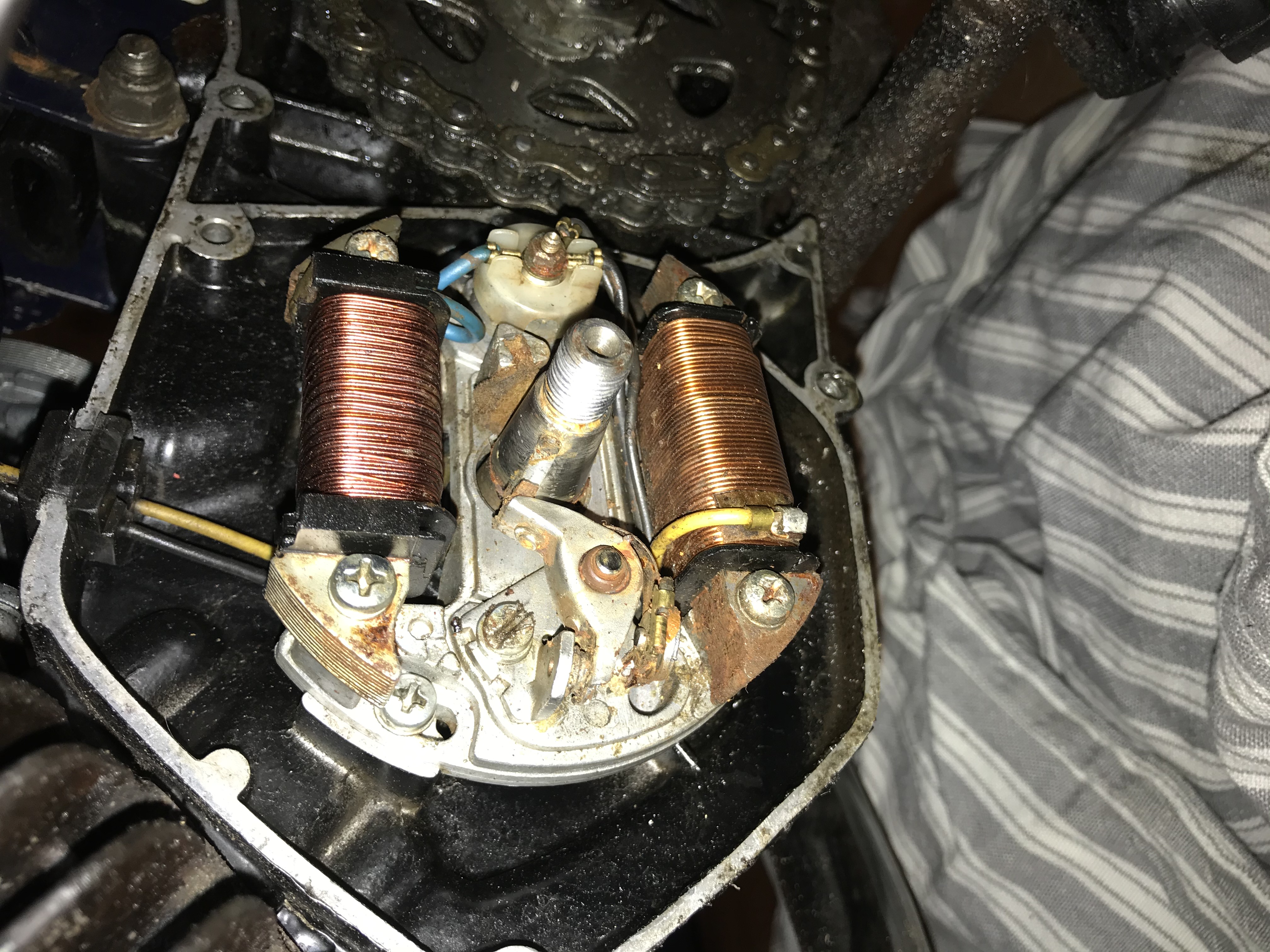 Nee het fiber nokje raakt dan de nok-verhoging in het vliegwiel niet meer, fiber nok slijt en daarom moet je contactpunten regelmatig opnieuw afstellen.