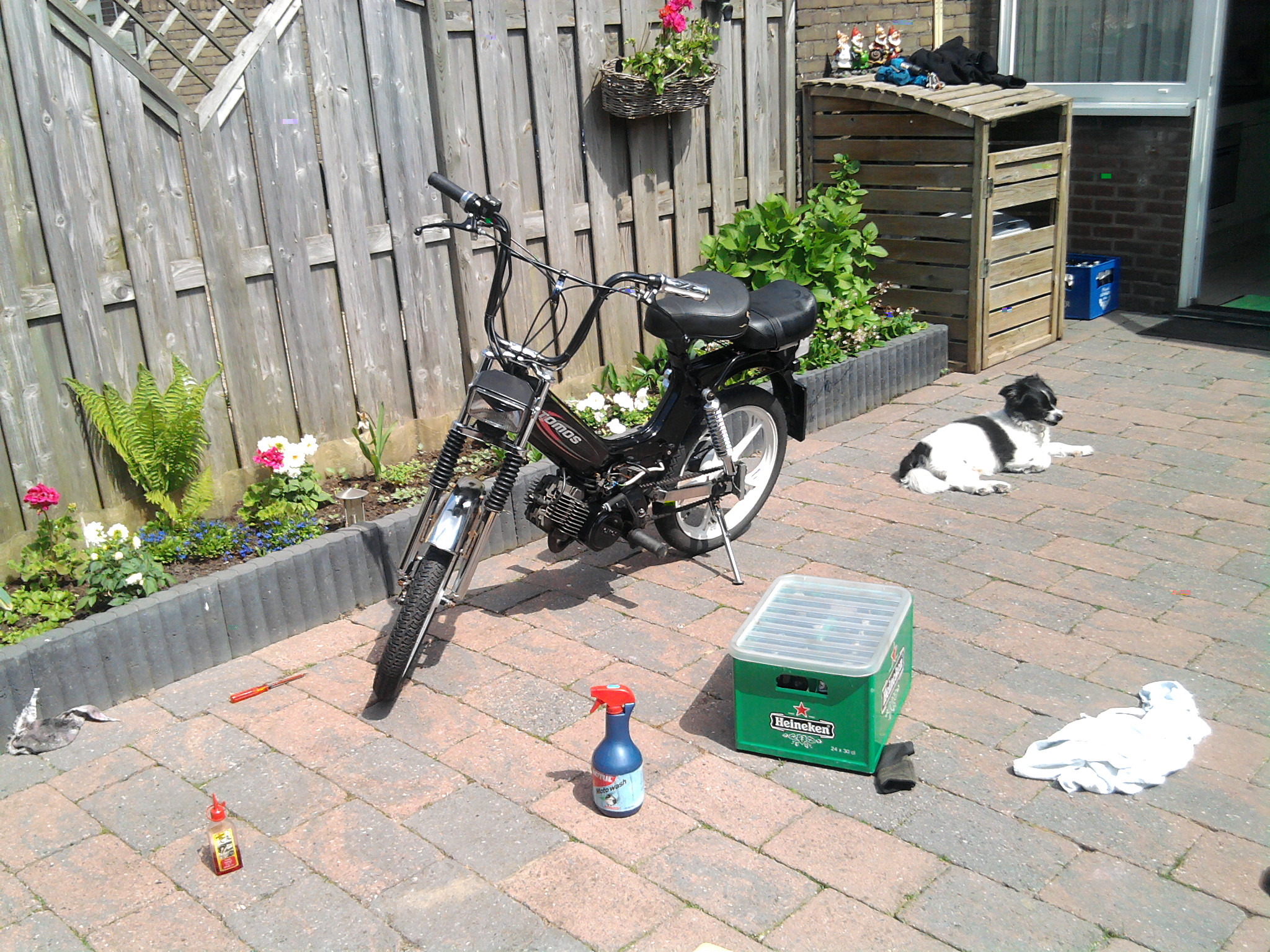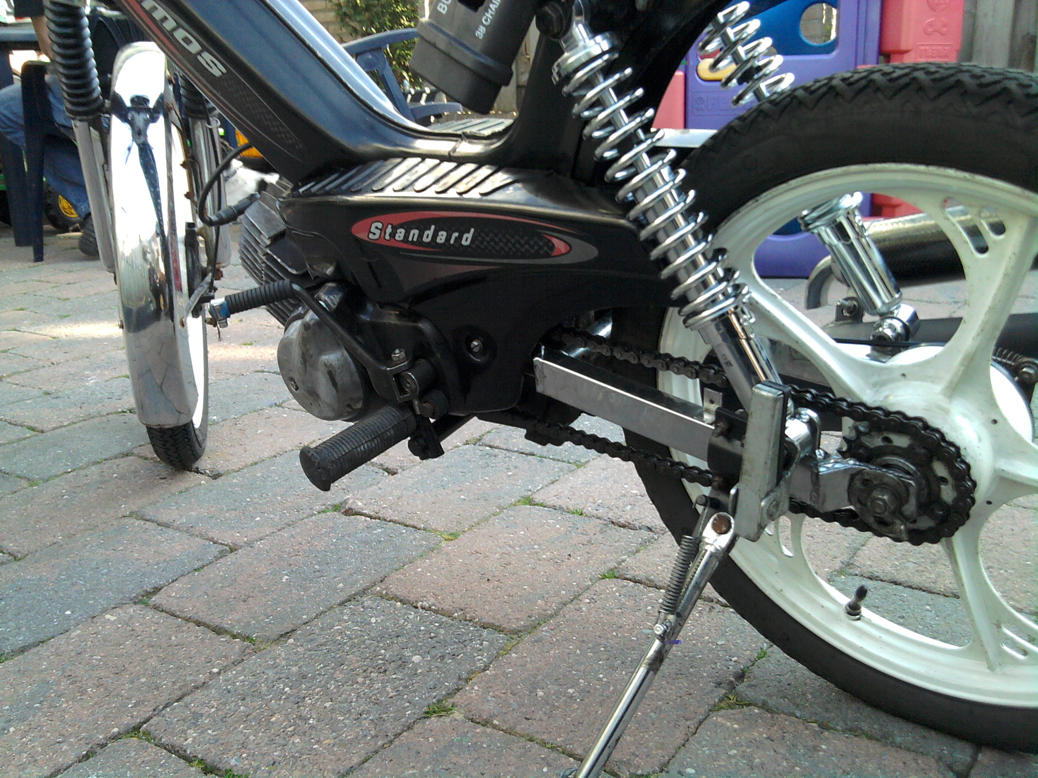 Chrome stuur en die zure handvaten er af, misschien zijkapjes erop.
