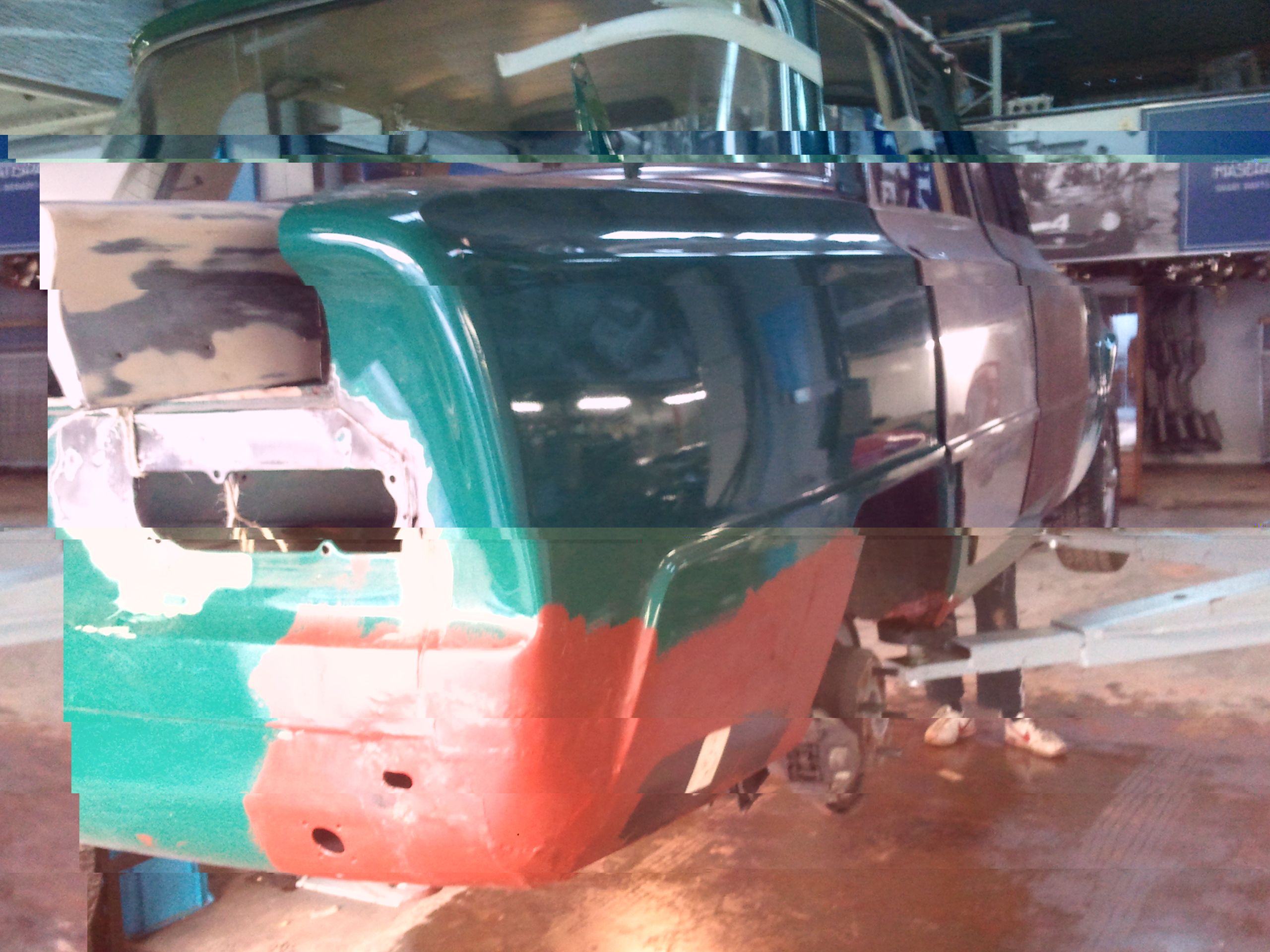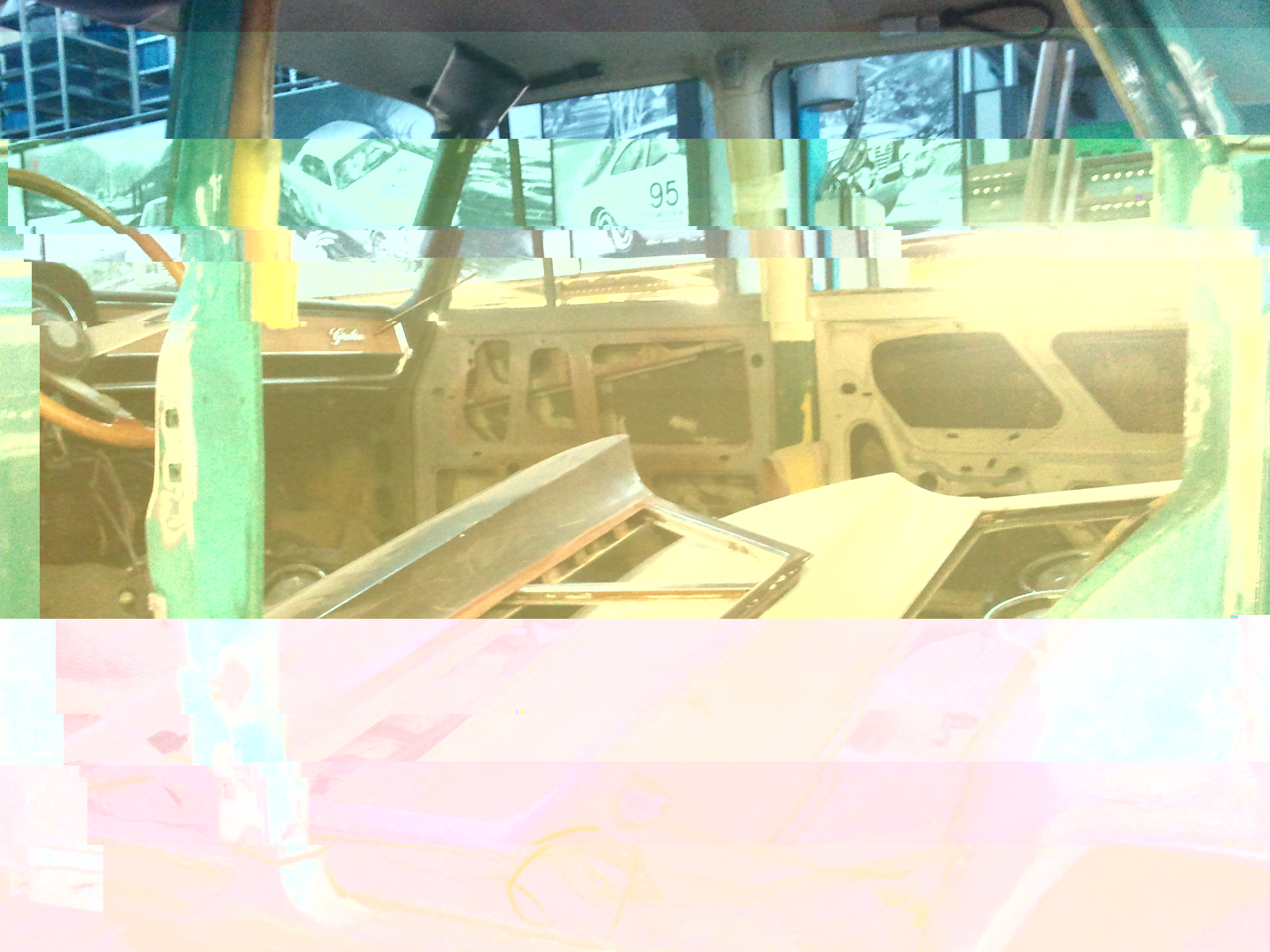 1 deur strak, grondverf klaar en de binnenkant van de kofferklep kaal. Morgen van 10.30 tot 15.45 schuren.