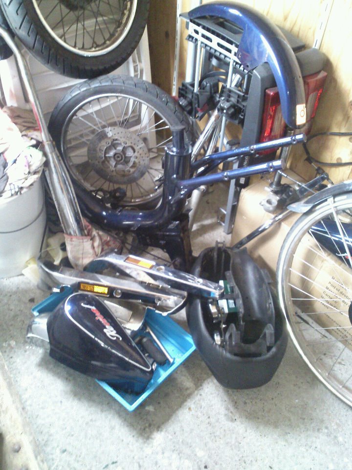 minibike kappen gebruikt en glasvezel om hem te repareren,genoeg spullen maar geen geld