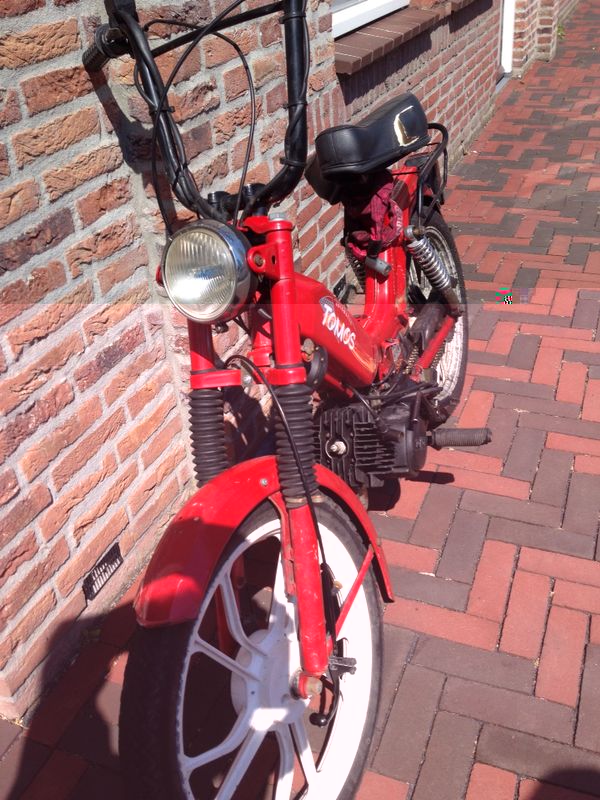 Afgelopen vrijdagmiddag heb ik een aanrijding met mijn tomos gehad. Het was een gevalletje van rechtdoor op dezelfde weg gaat voor en de auto die mij aanreed verklaarde mij niet gezien te hebben(ik remde wel,maar hielp niet meer). Ik ben gelukkig goed terecht gekomen en heb wat schaafwonden en kneuzingen opgelopen. Ben ter plekke behandeld door de ambulancebroeders en verder is alles ingevuld aan schadeformulieren. De brommer is er het slechtst aan toe. Mijn pa is gisteren hiermee naar de bromboer geweest en die verklaarde dat het 6 a 700 euro zou kosten om m rijklaar te maken.