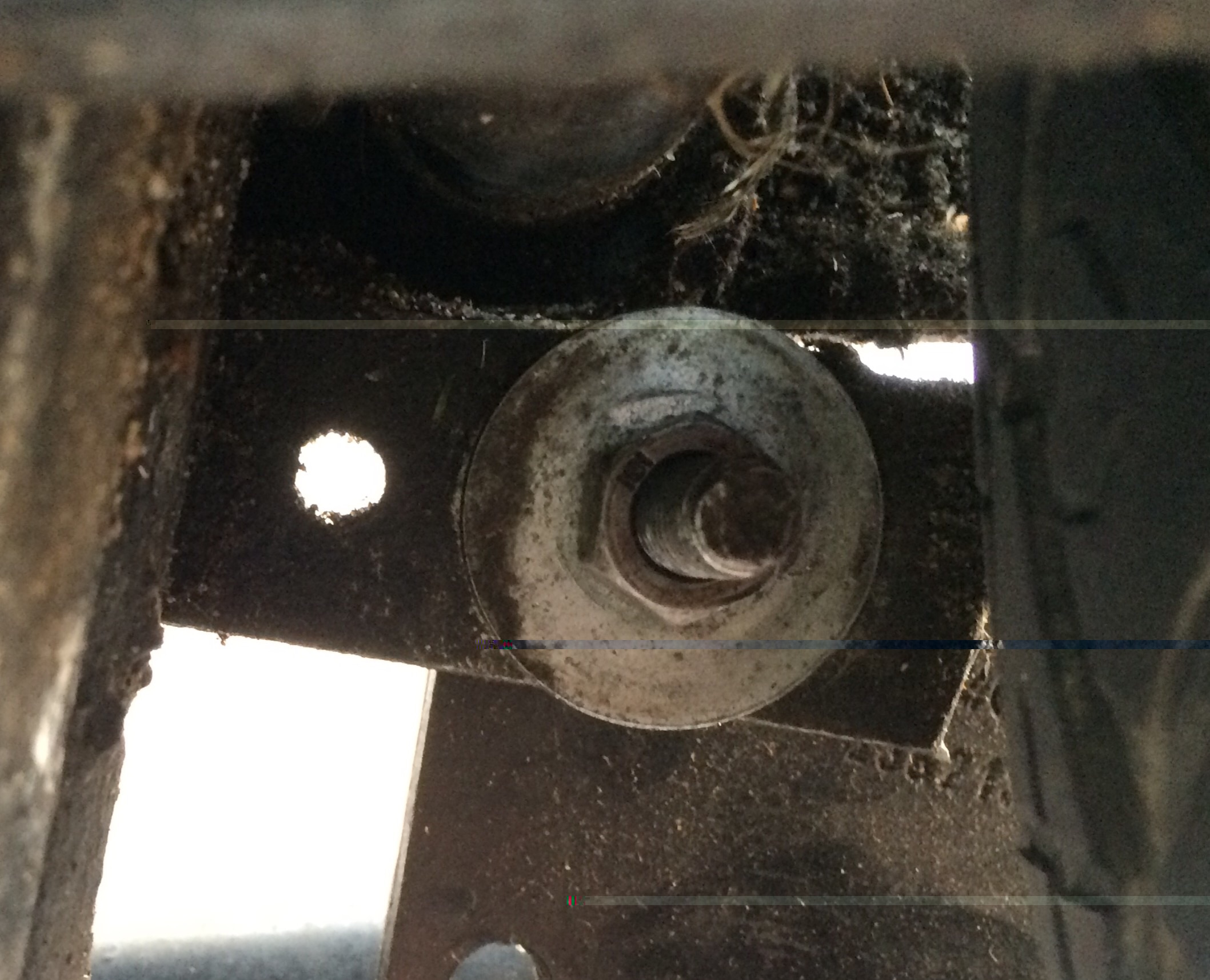 Misschien een wat onduidelijke foto. Maar achter het onderste gat van de uitlaat zit geen stuk beugel waar ik een bout doorheen kan steken. Heb bij deze even een foto van de achterkant van het beugeltje. Het is gewoon een rechthoekig beugeltje met 2 gaten wat horizontaal aan het frame is bevestigd.