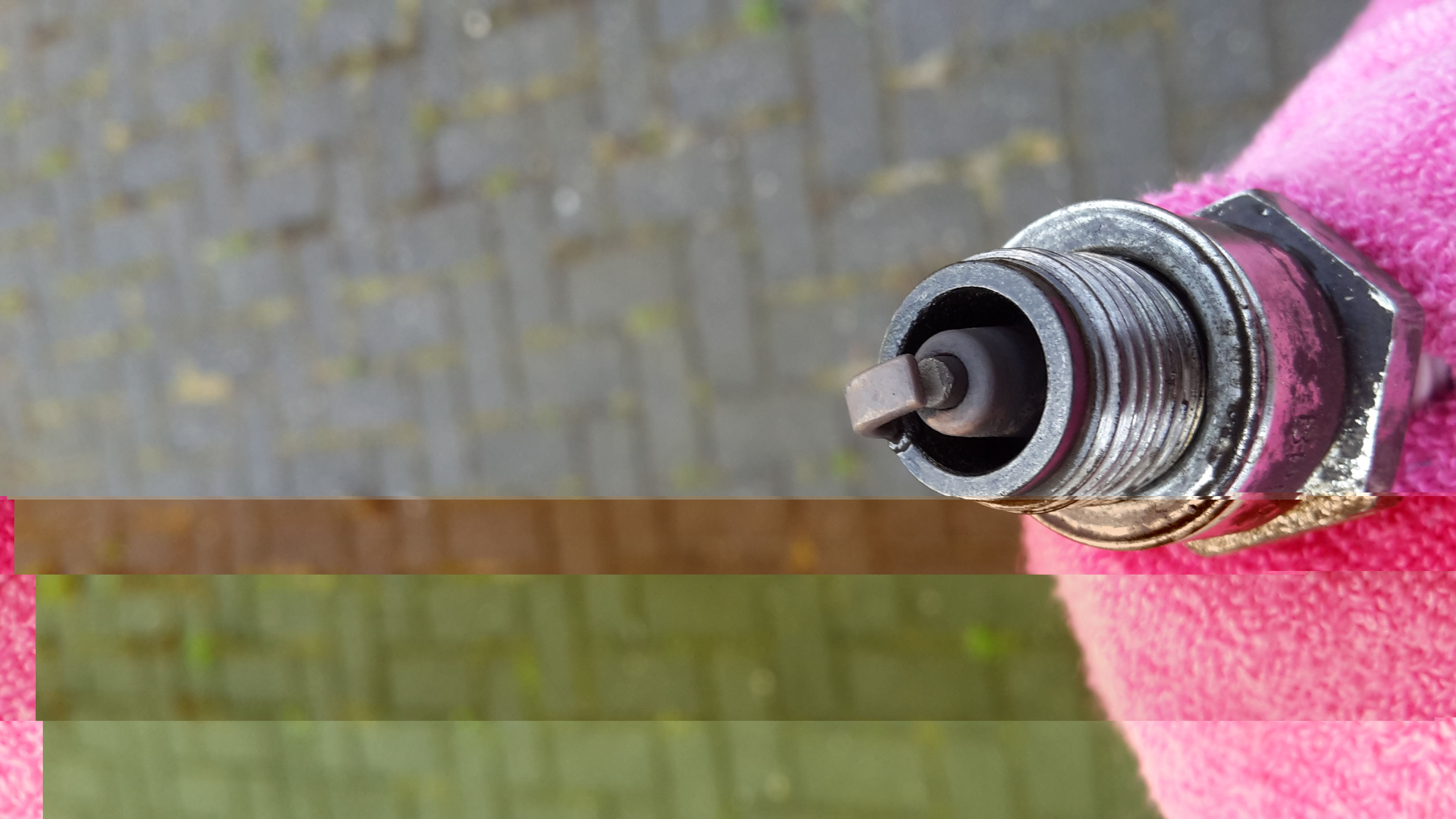 Zodoende heb ik dat gedaan en ik ging een rondje rijden. Nadat ik dat had gedaan heb ik direct de bougie eruit getrokken en gekeken wat voor een kleur hij Is. De bougie zag er na de rit zo uit: