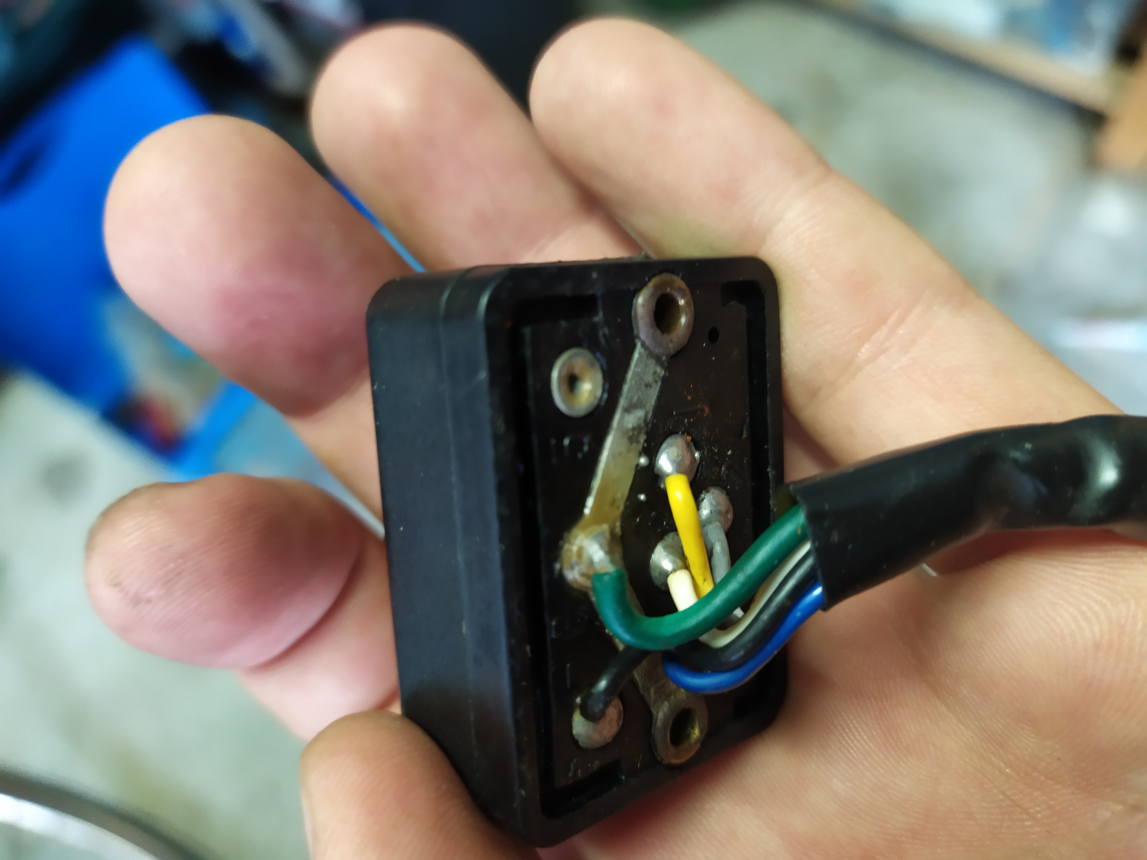 Er zou nog ergens bij het balhoofd een gele draad los moeten zijn voor bijvoorbeeld een claxon. Als die er niet zit kan je van de gele draad een nieuwe aansluiting aftakken. En mocht je op de groen/ bruine draad geen reactie hebben met de multimeter op de knop van de claxon, een bruine draad solderen op de aansluiting in het kastje en deze via de boom naar de claxon leiden. Heb overigens geen hoge verwachtingen van een claxon, klinkt meer als een verkrachte eend. En je licht dimt enorm.