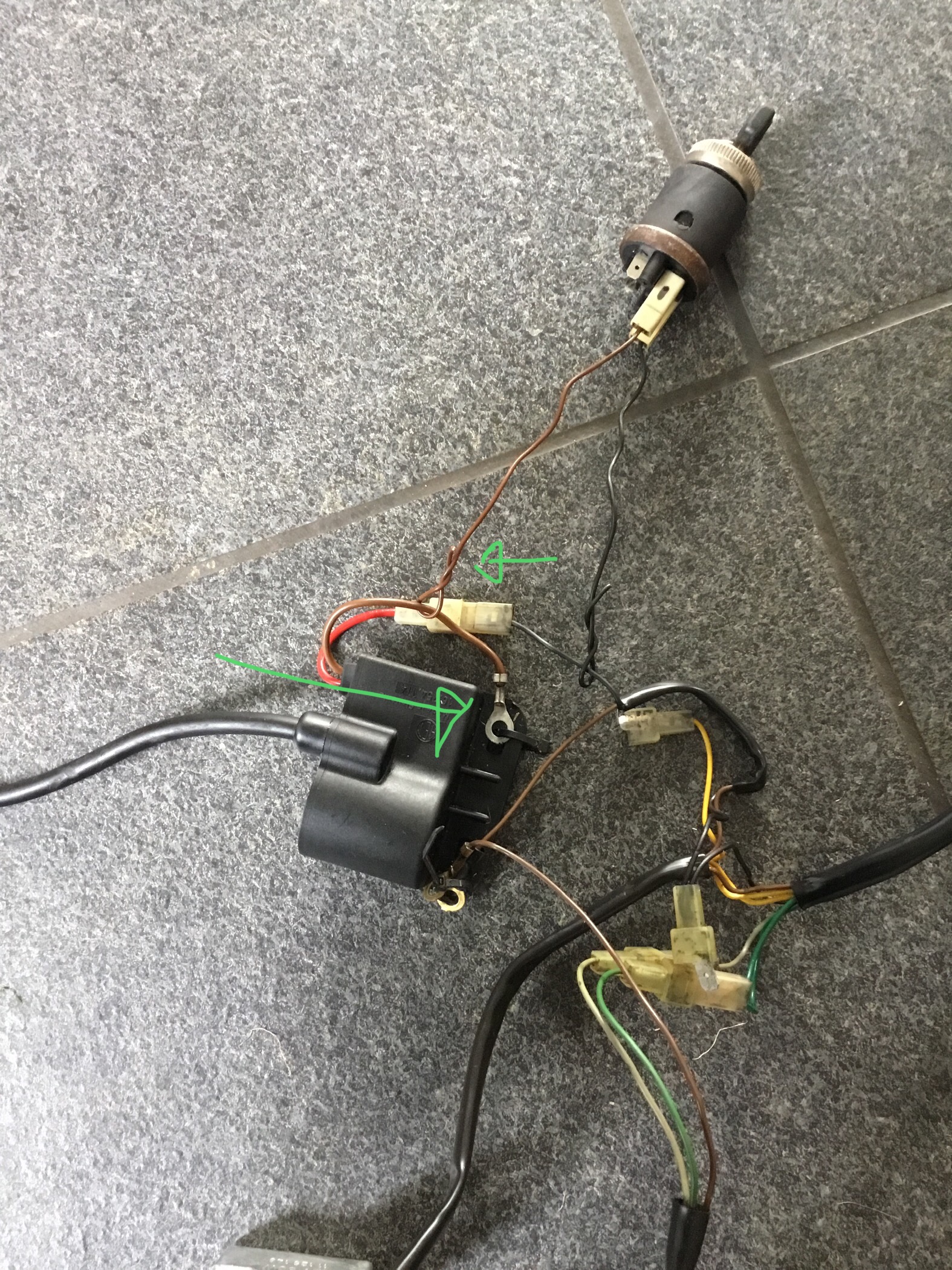(Waar de blauwe pijl naartoe wijst daar was de voorlamp op aangesloten.)