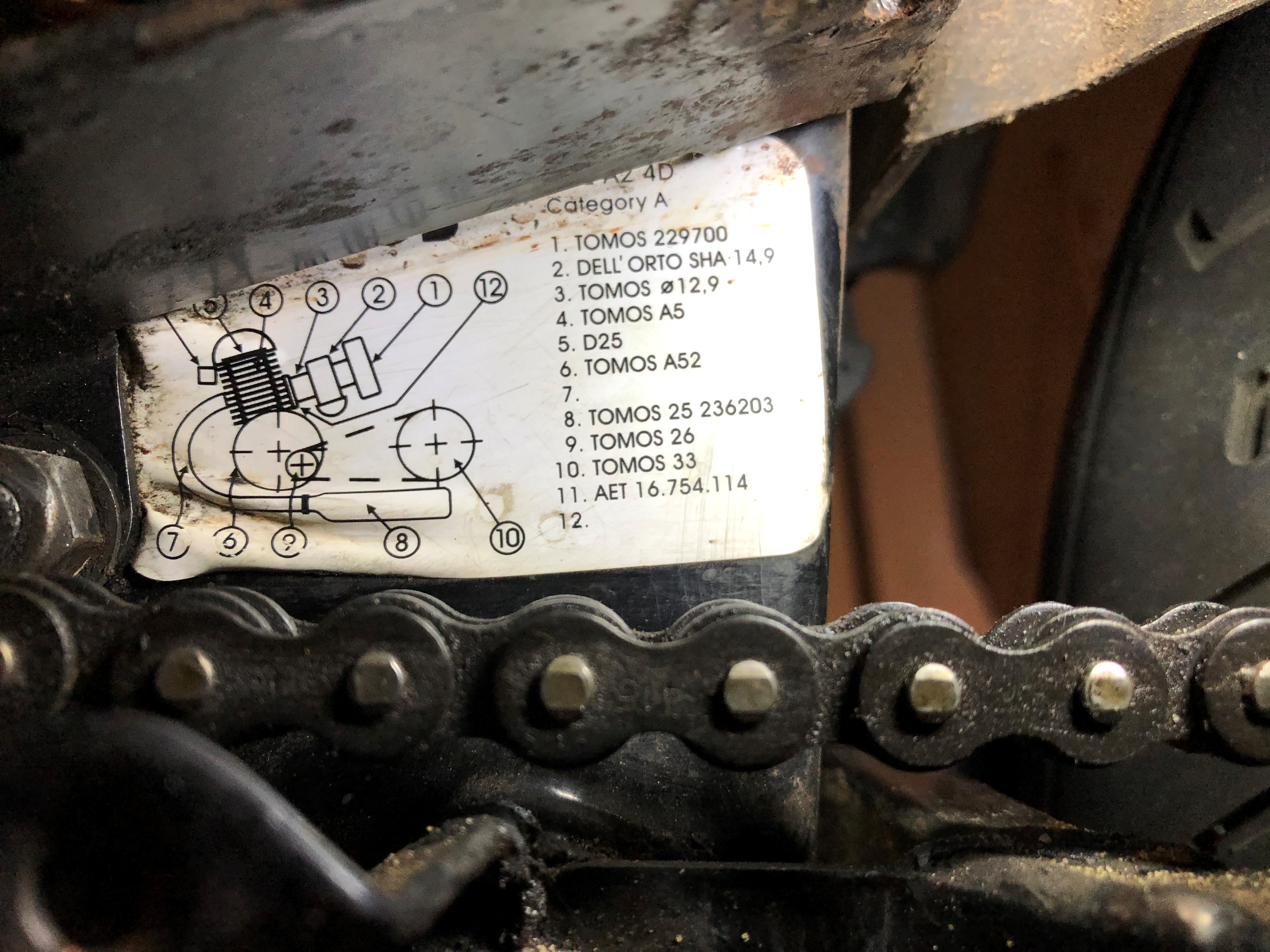 Vooralsnog leid ik uit jouw sticker op het frame af dat het bij jouw Tomos om een snorfiets gaat (14/9 carburateur, snorkop en twv 26-33, resp. nr 2, 5 & 9+10)