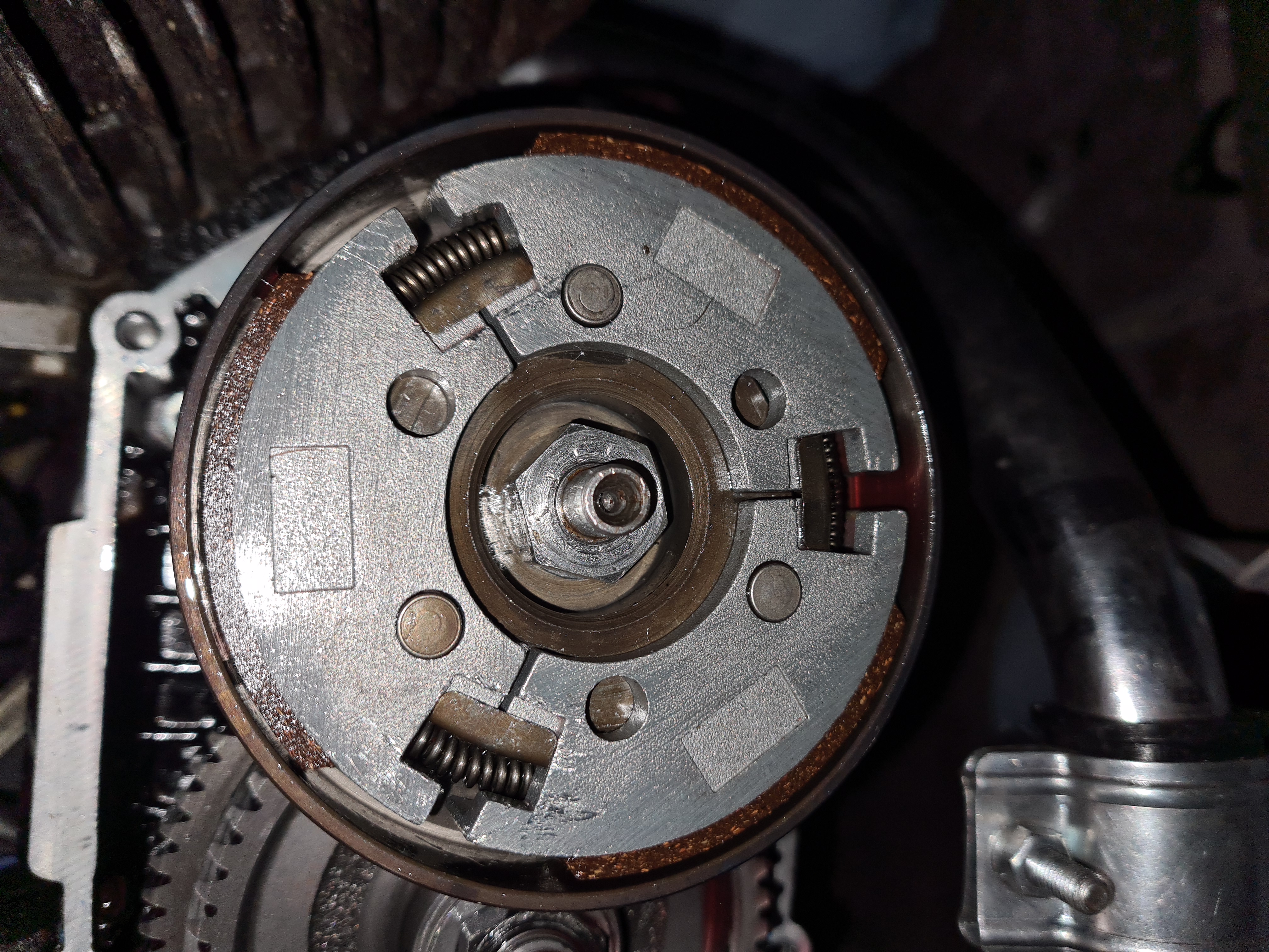 Dus ik de koppelingssegmenten vervangen samen met de drukveer van de eerste versnelling, nieuwe pennen erbij, segmenten hebben 9 uurtjes liggen weken. Na een hoop gepruts ook vraagtekenveer en uitlaat vervangen, nieuwe atf, nieuwe bougie. Ik denk mooi, gaan we de uitlaat testen!