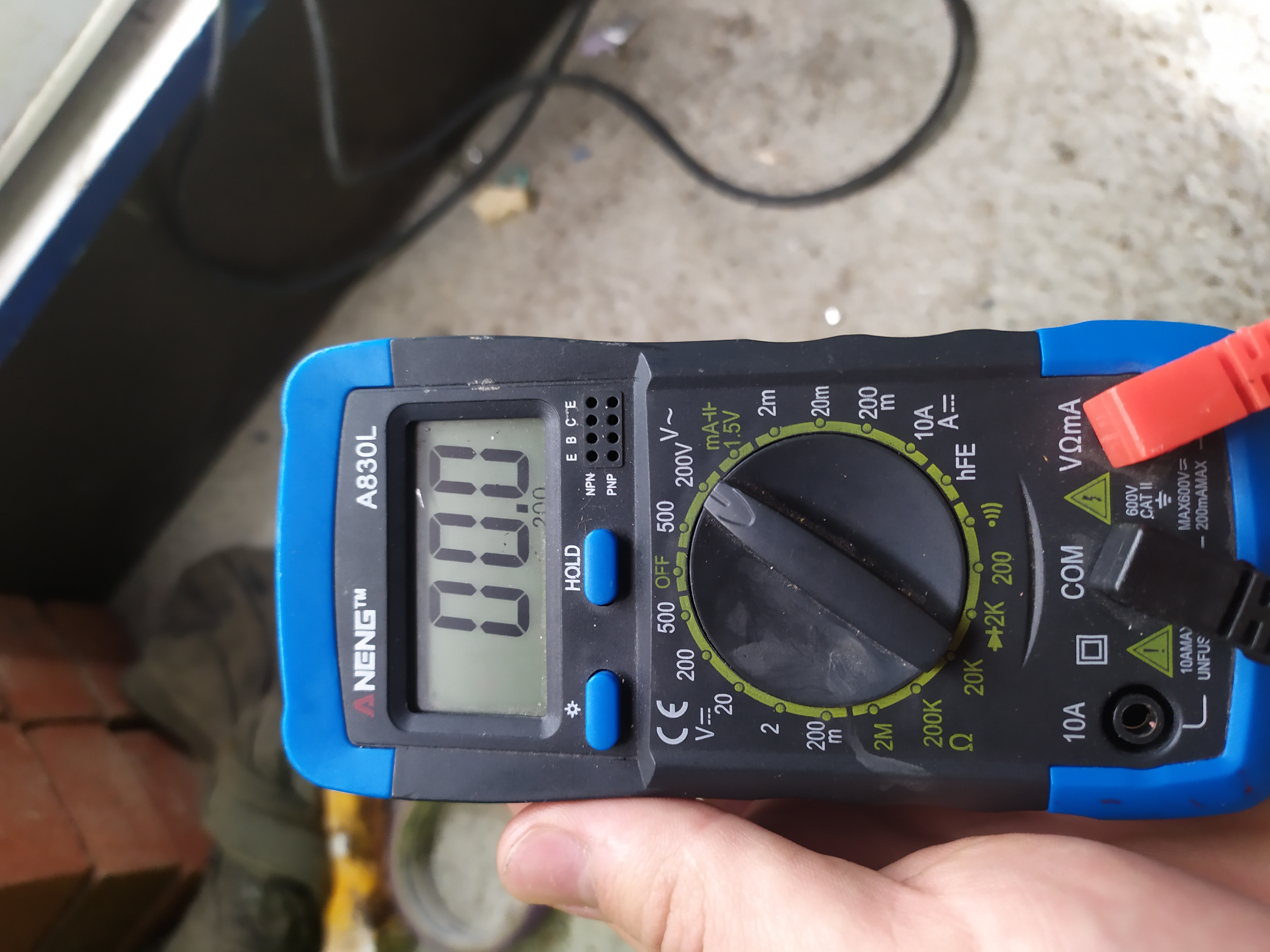 nou ik meet geen verschil allebei rond de 20v. als die kapot is hoe kan het zo zijn dat het licht het al die tijd wel heeft gedaan? het zou me niks verbazen dat het kapot is aangezien dat ding uit '95 komt.