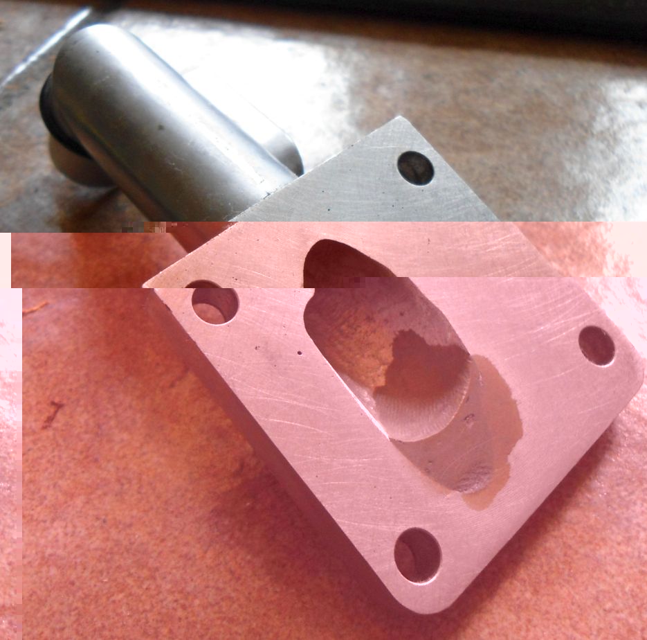 Met meteen ideetje van het aanpassen van de kop er bij zodat er een wat dikkere voetpakking onder kon. Dat ging eigenlijk prima, gekozen voor de 65 cc kop van DMP omdat daar minder matriaal vanaf moet omdat ik geen draaibank heb maar wel een schuurmuis :) Zou DMP echter niet wezen als er geen verschil in die koppen zit kwam ik achter. |Als je hem helemaal vlakt dan is ie kleiner als 38mm en dat scheelt nogal of je de ene kop of de andere hebt, DOH! Enfin, bougie in de kop gedraaid, die in de boormachine en met een fijn schuurpapiertje bewerkt en verrek, dat ging perfect!