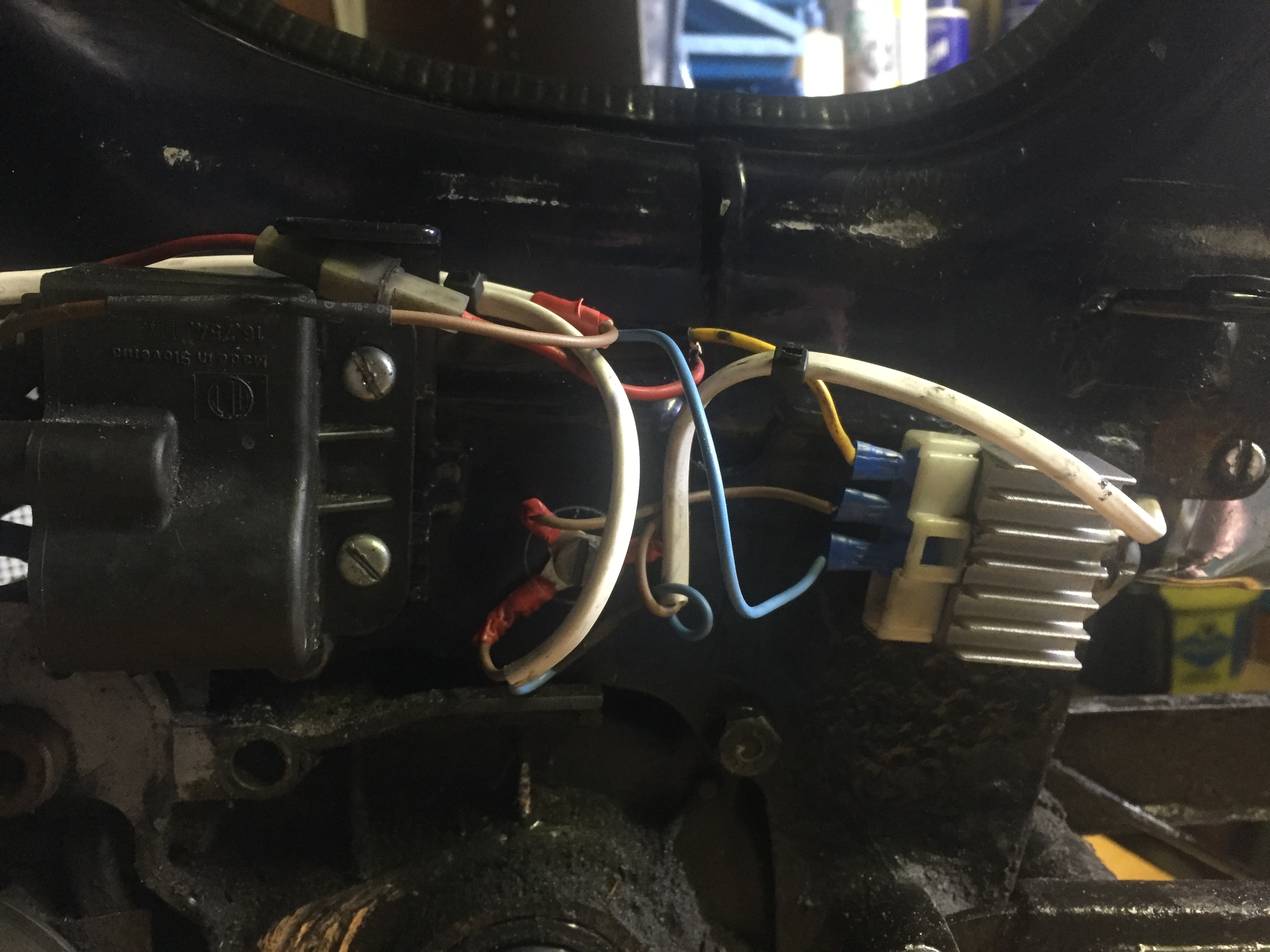 Zou iemand het aansluiten van mijn spanningsregelaar kunnen verifiëren? Geel komt uit het blok, bruin is massa en blauw gaat naar verlichting. Het betreft een spanningsregelaar voor de kickstart versie.