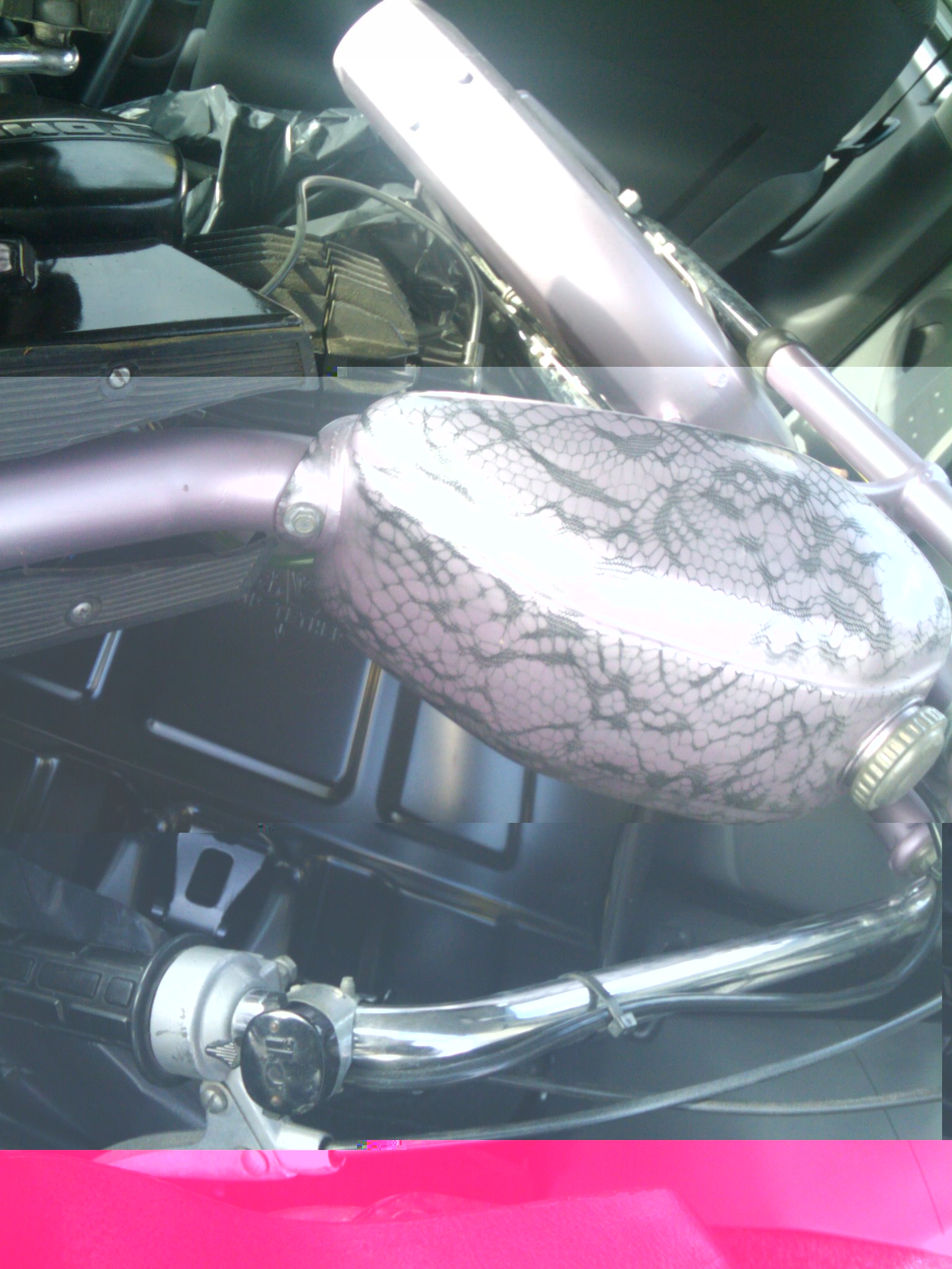 Voor mensen die het zich afvragen, ik heb het even nagevraagd.. en deze 'custom' paintjob is bereikt door een panty over de tank heen te leggen en daar overheen te spuiten... just so you know.