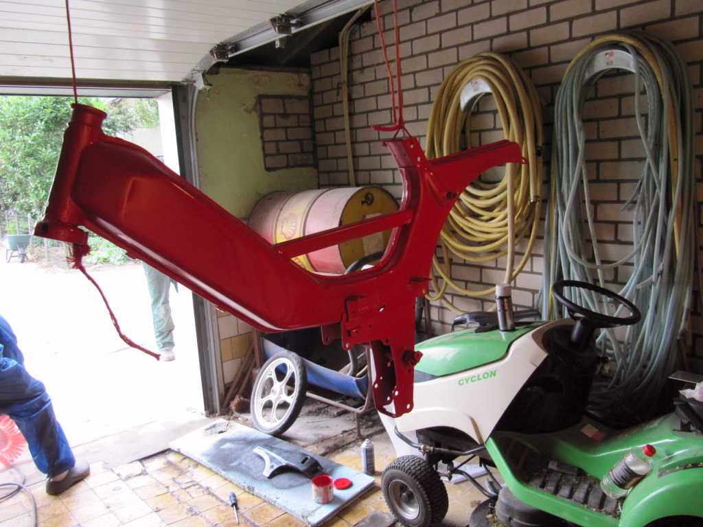 Nu wachten tot de ktm koppeling kan opgestuurd worden, volgende x het frame weer spuiten, cillinder erop beunen en de koppeling erin zetten :)