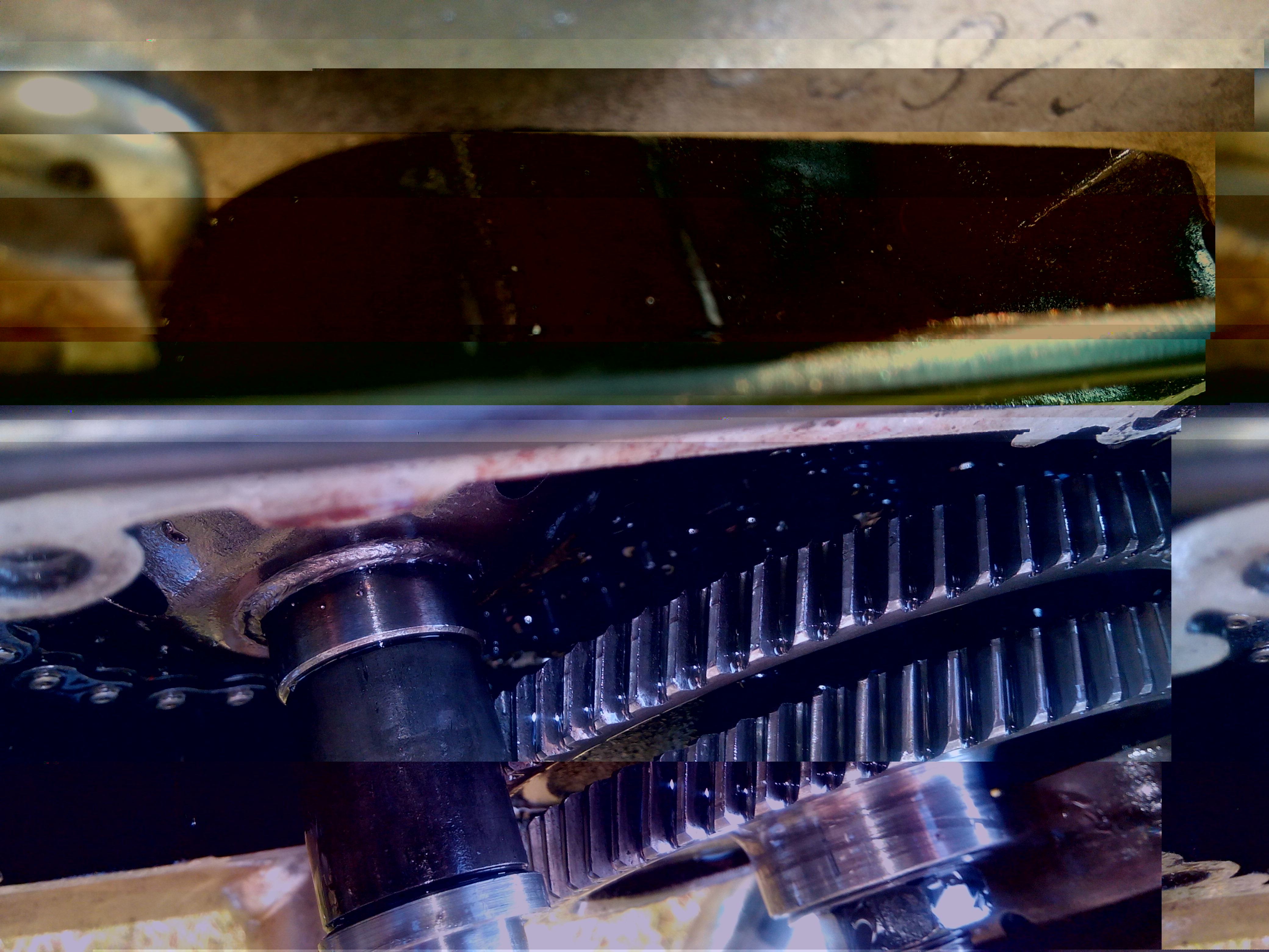 Innesteling van de rollen in de kooi? Krans van het voorste kettingwiel weggvreten? hart koppeling weggevreten? Segmenten geen voering meer?