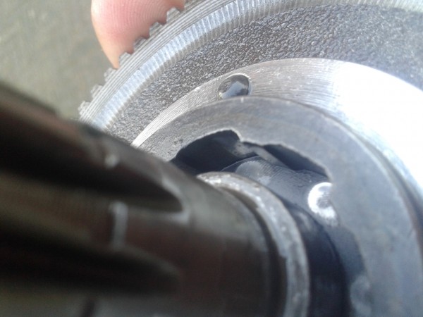 Zit alles nog wel goed bij het voortandwiel die de ketting aandrijft? En voor al het midden van dat tandwiel.