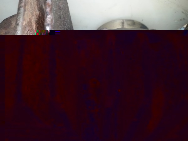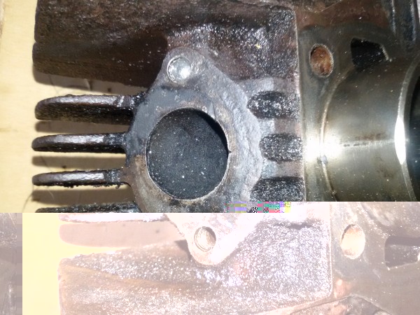 Vanmiddag dus het blok eronderuit gehaald en de cilinder gedemonteerd, eerst de afgebroken bout geprobeerd uit te boren en met een linkse tap eruit te draaien, weinig succes... uiteindelijk nog proberen te boren maar dat gaat zo stug.. dit is hoe het er nu uit ziet: