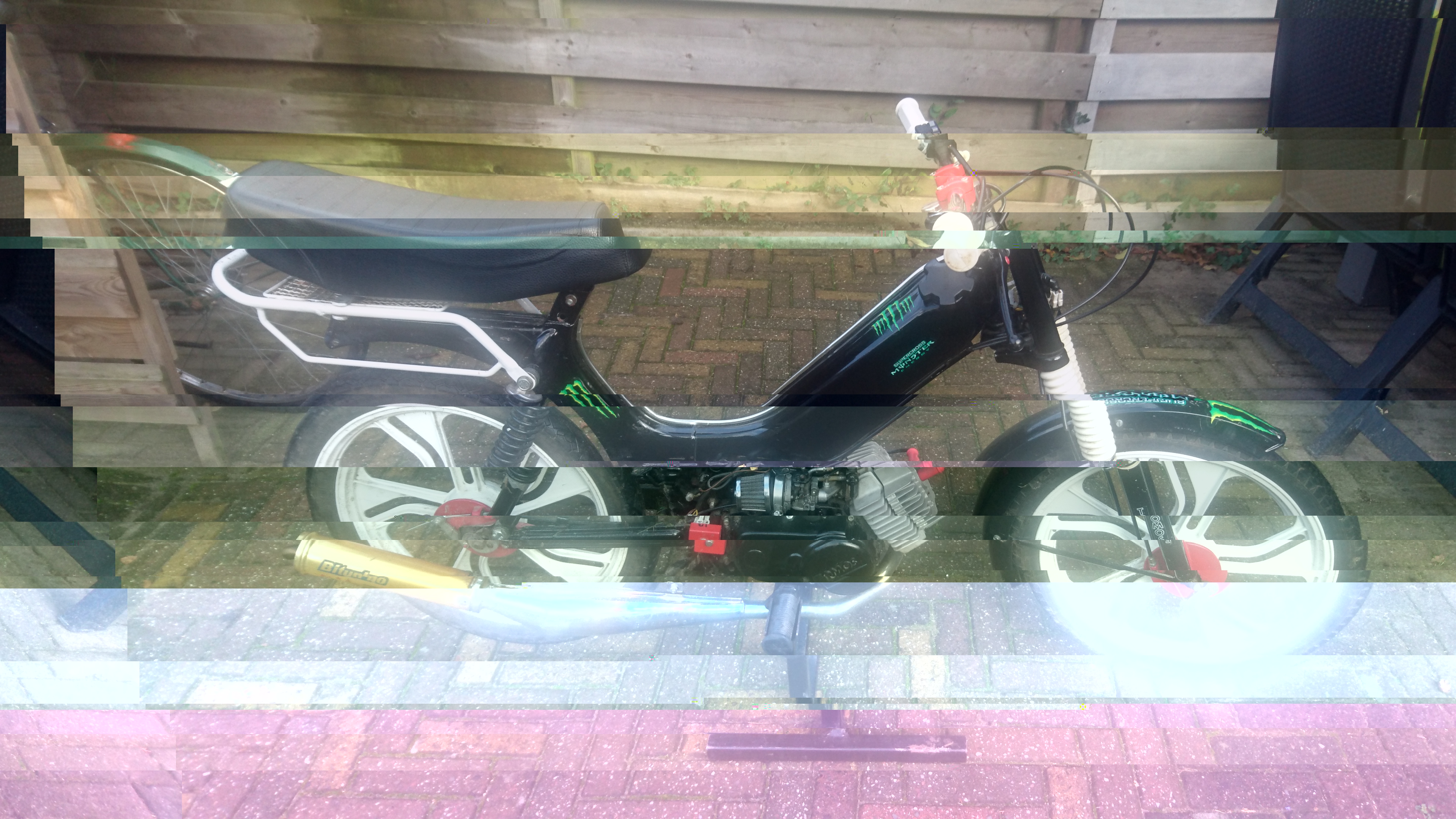 Qua hoogte red je het inderdaad wel, maar breedte wordt lastig. Zelf had ik een redelijk grote achterband op m'n tomos en daarmee had ik aan weerszijde een paar mm speling.