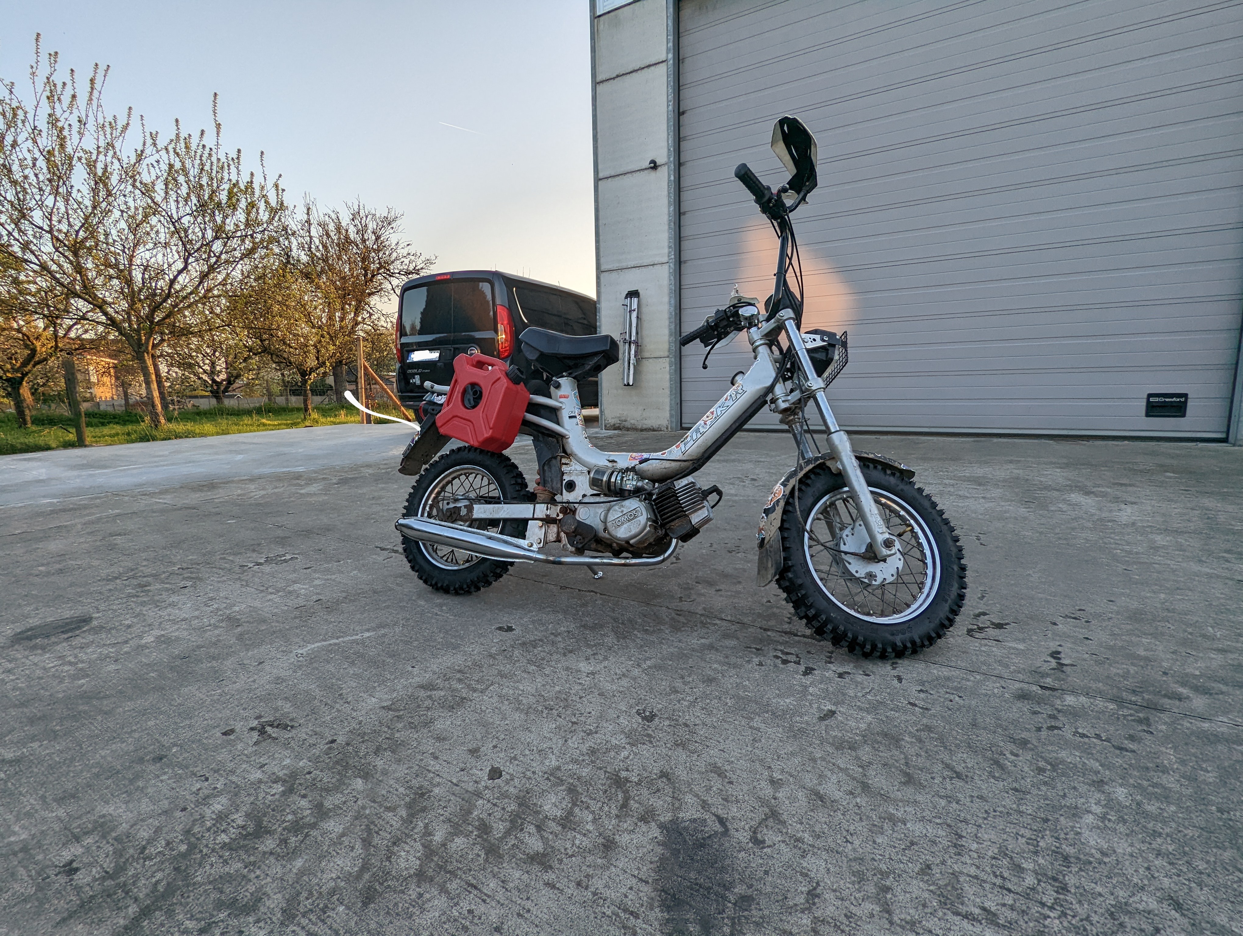 Mijn Tomos pack'r start elektrisch, heeft stationair & rijdt ok, haalt een top van 55km/u maar ontbreekt trekkracht. Er is echt bijna geen koppel en zo goed als geen verschil tussen 50cc of 65cc dit deed die met: